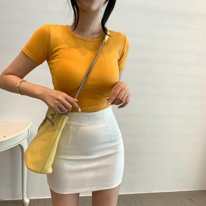 シンプルだけど上品な半袖クロップ丈カラーTシャツ♪